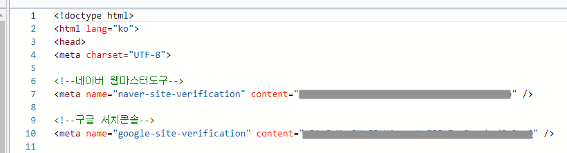 구글서치콘솔(Google Search Console)를 검색하여 로그인한다. 그리고 속성 유형 > URL 접두어에 내 블로그 URL를 입력한다. 도메인을 별도 구매하고 만든 블로그는 속성 유형 > 도메인으로 진행하면 된다. 네이버 웹마스터 도구와 마찬가지로 소유권 확인해야 해서 '다른 확인 방법 > HTML 태그'를 선택하여 메타 태그를 복사한 뒤 '블로그 관리 홈 > 꾸미기 > 스킨 편집 > html편집'에 들어가서 붙인다. 다시 구글서치콘솔(Google Search Console)으로 돌아와서 소유 확인한다.